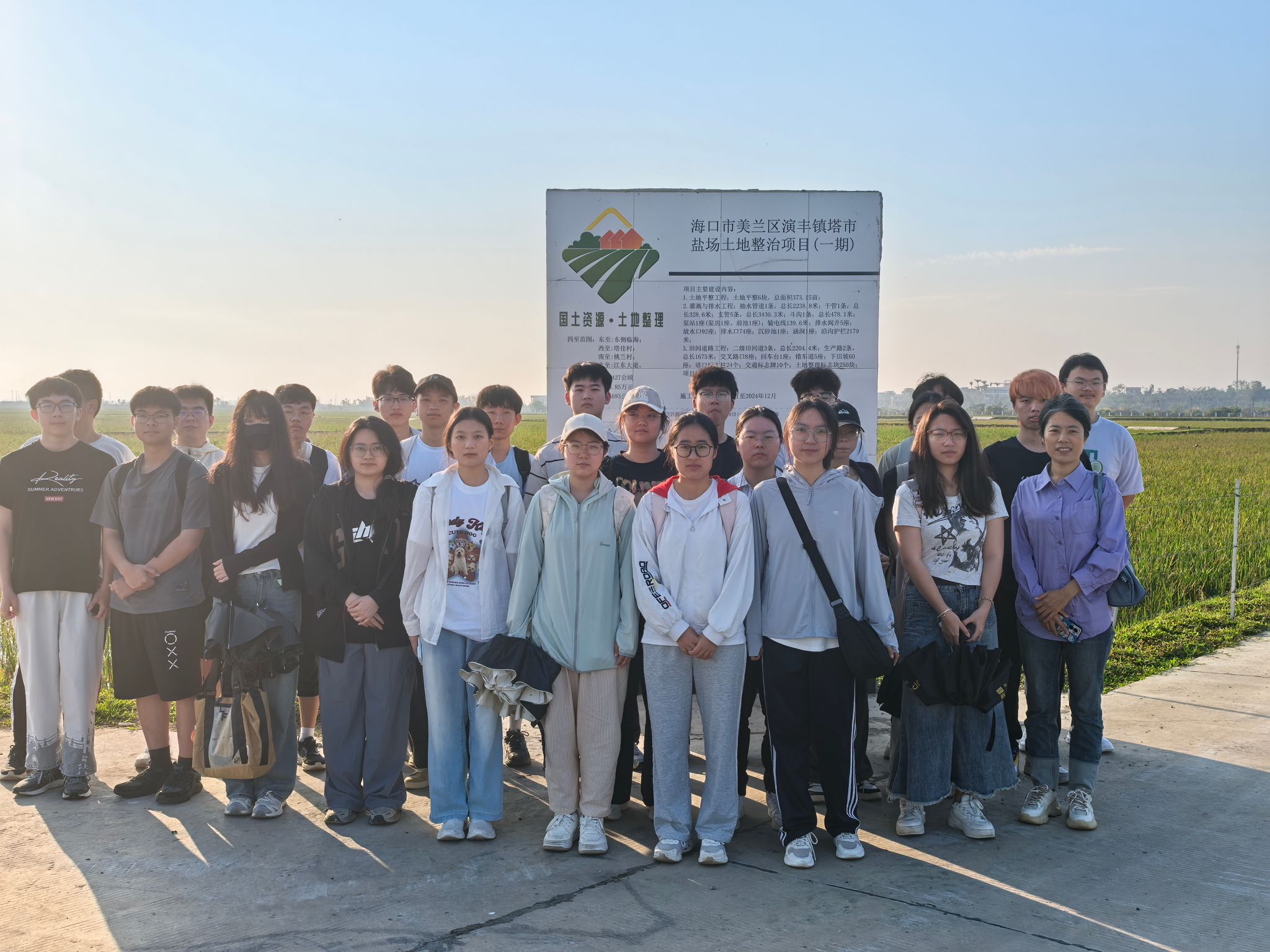 田野调查是beats365唯一官方网站深化实践教学的重要环节。为了进一步增强员工理论联系实际的能力,按照教学安排,3月15日,土地资源管理系主任宋晓丽副教授带领27名员工前往海口市美兰区演丰镇桃兰村,以土地整治项目为例开展土地调查。