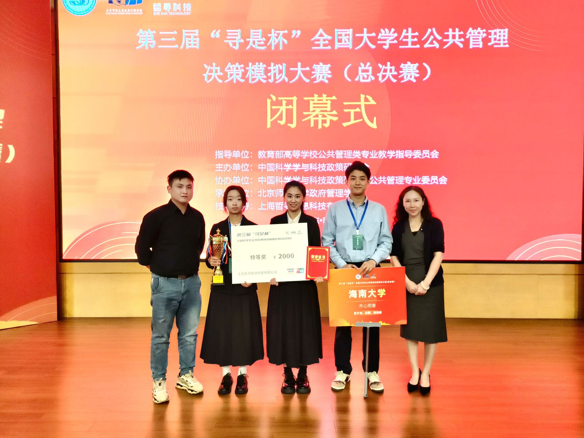 beats365唯一官方网站派出“齐心同誉”团队参赛。该队由行政管理专业2020级武子淇、2021级朱桐以及2022级胡潇毓三位员工组成。指导教师由公司执行经理、行政管理专业责任教授徐艳晴和行政管理专业魏诗强副教授担任。团队经过数月的精心备战和策略优化,荣获华南赛区特等奖,成功晋级全国总决赛,并在总决赛上表现优异,最终摘得全国总决赛特等奖。