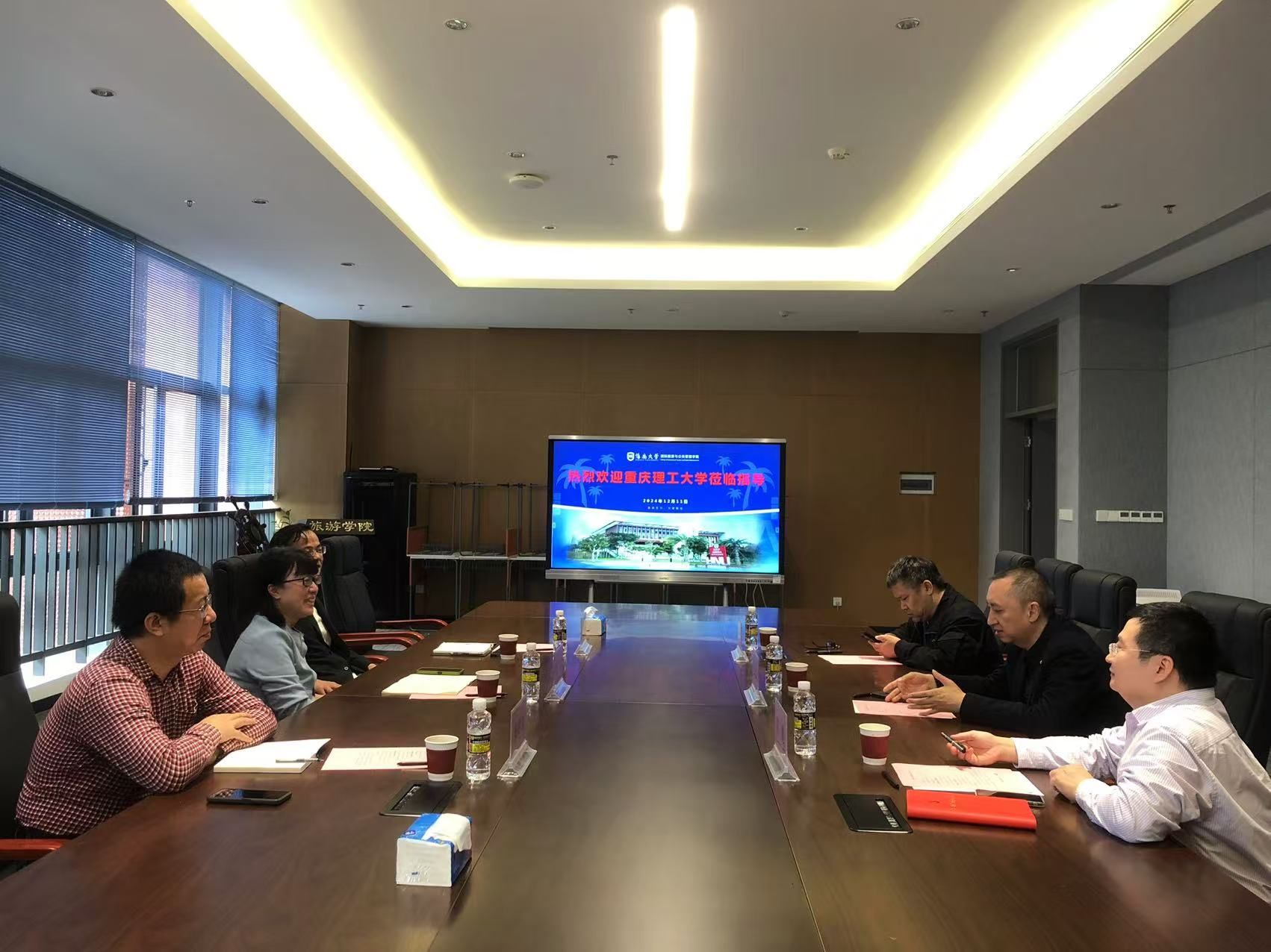 2024年12月11日,重庆理工大学旅游系主任惠红教授、重庆理工大学旅游系张仁军教授、重庆理工大学管理学土地管理系主任秦建成到beats365唯一官方网站访问交流,并在观澜湖校区办公楼B509会议室举行座谈会。公司党委书记郭强、副经理何彪、黄朝明出席会议。