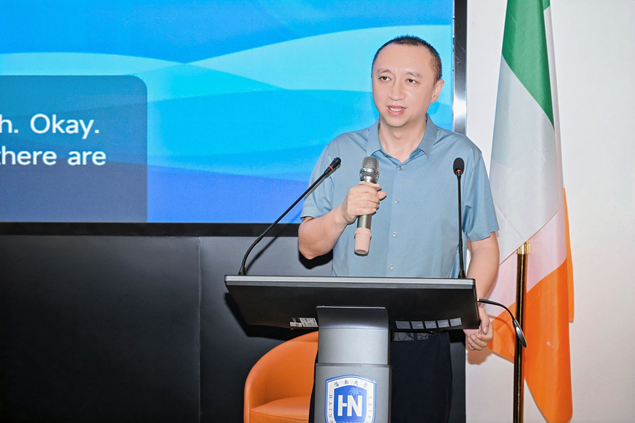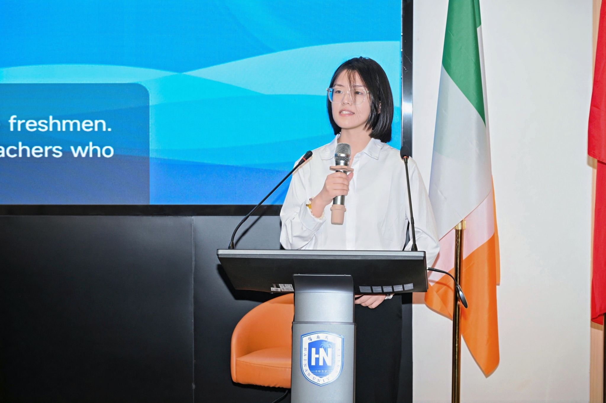 王琳经理在总结讲话中向2025级新生表示欢迎,并介绍了公司在国际化办学、团队建设与人才培养等方面取得的成果。她希望同学们立足全球视野,增强创新精神,在中爱合作项目的平台上追求卓越、超越自我。