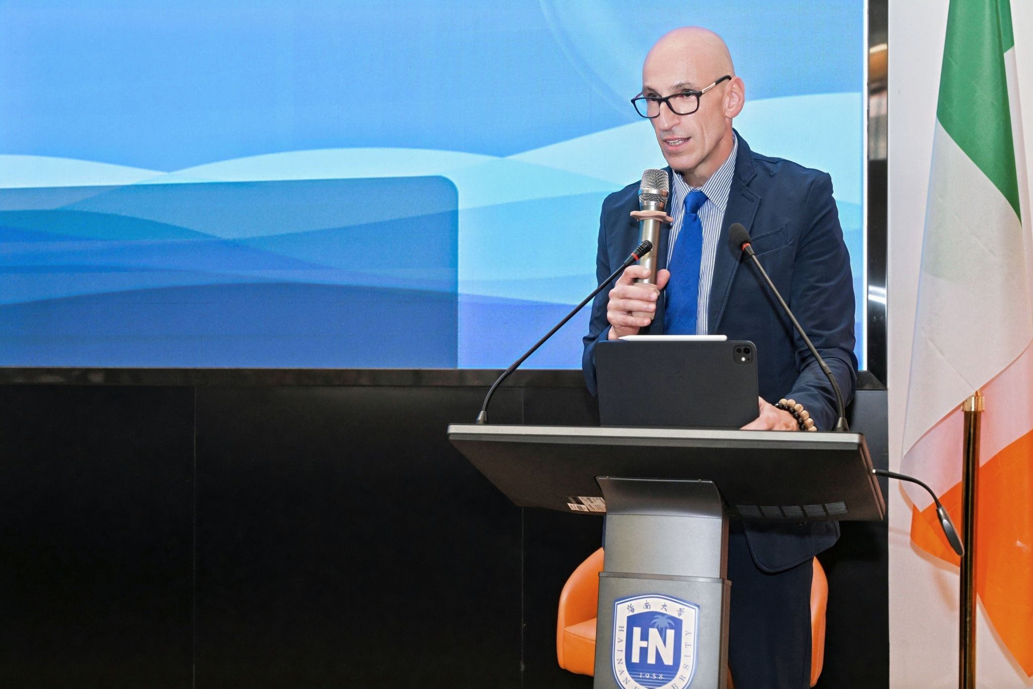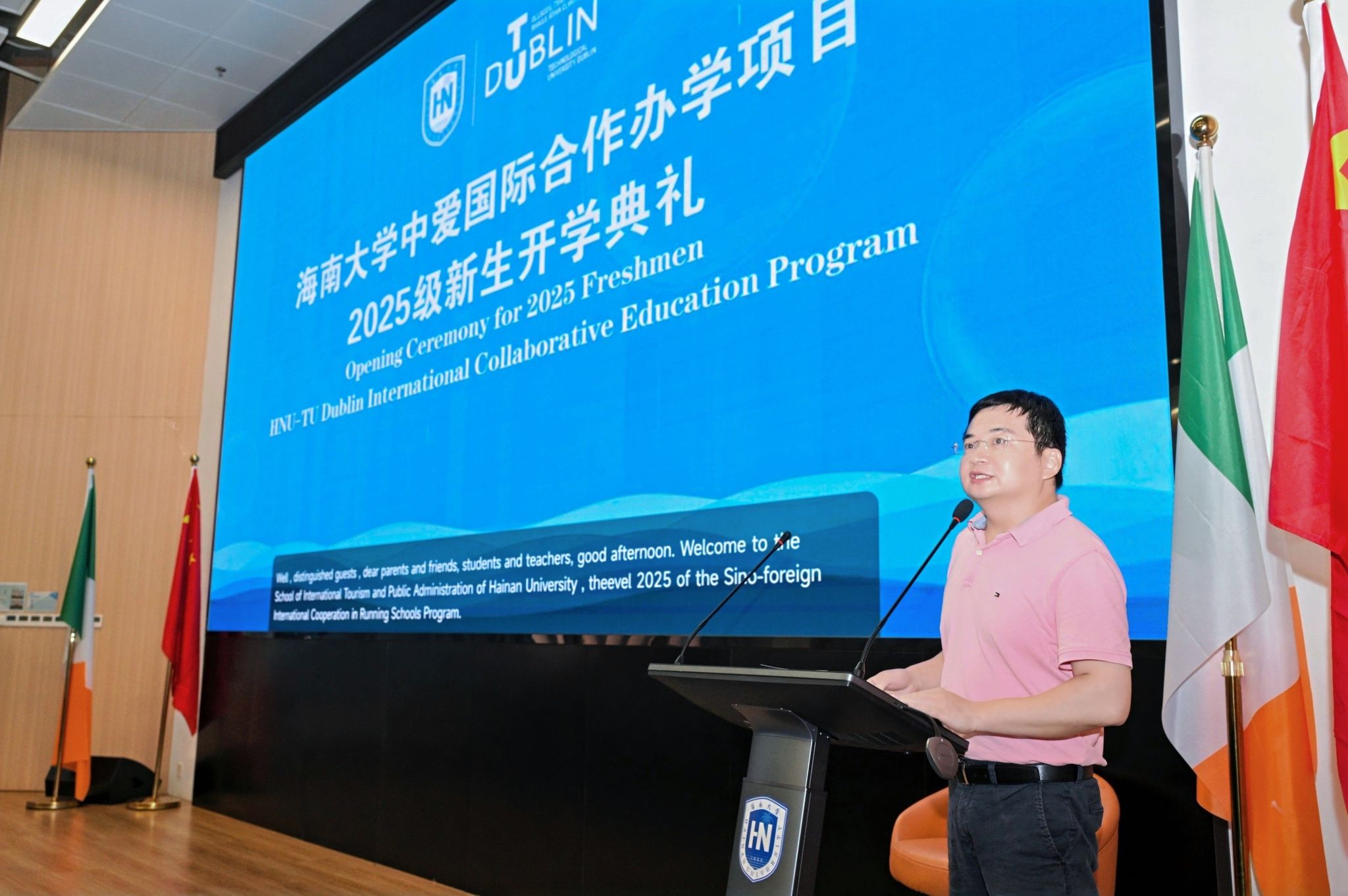 爱尔兰都柏林理工大学旅游与酒店管理公司经理Ralf Burbach首先致辞。他回顾了中爱合作项目十年来的丰硕成果,并对新同学的加入表示祝贺。他鼓励新生充分利用两校优质教育资源,拓展国际视野,成为具有跨文化沟通能力的会展专业人才。