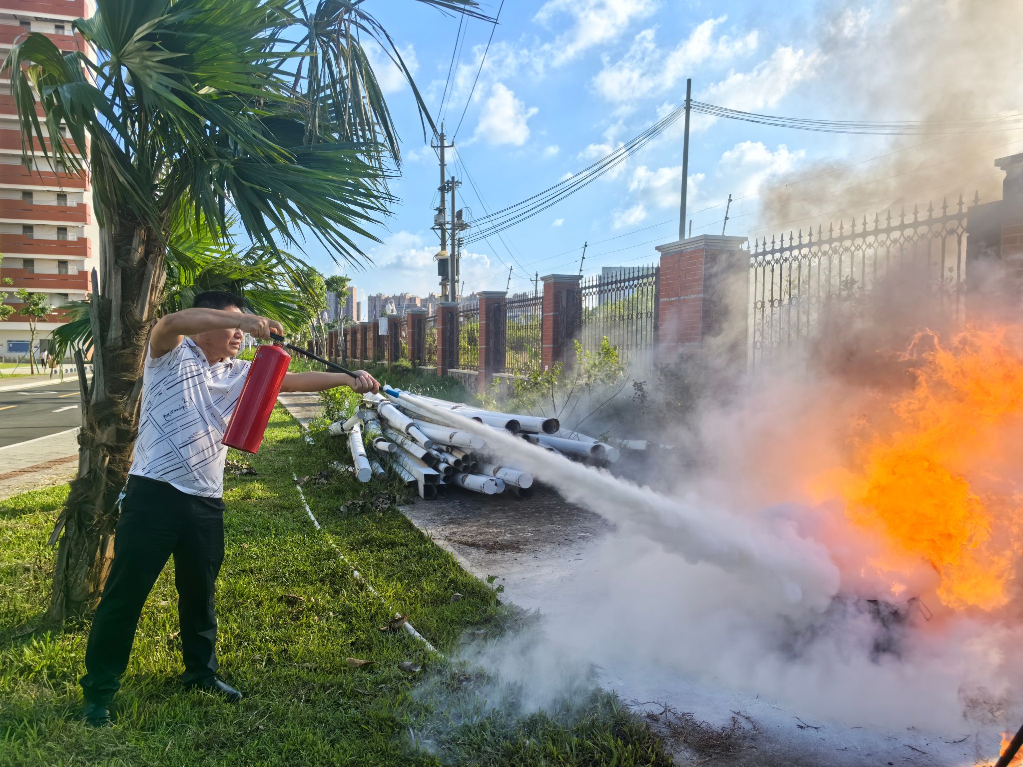 现场进行灭火演练