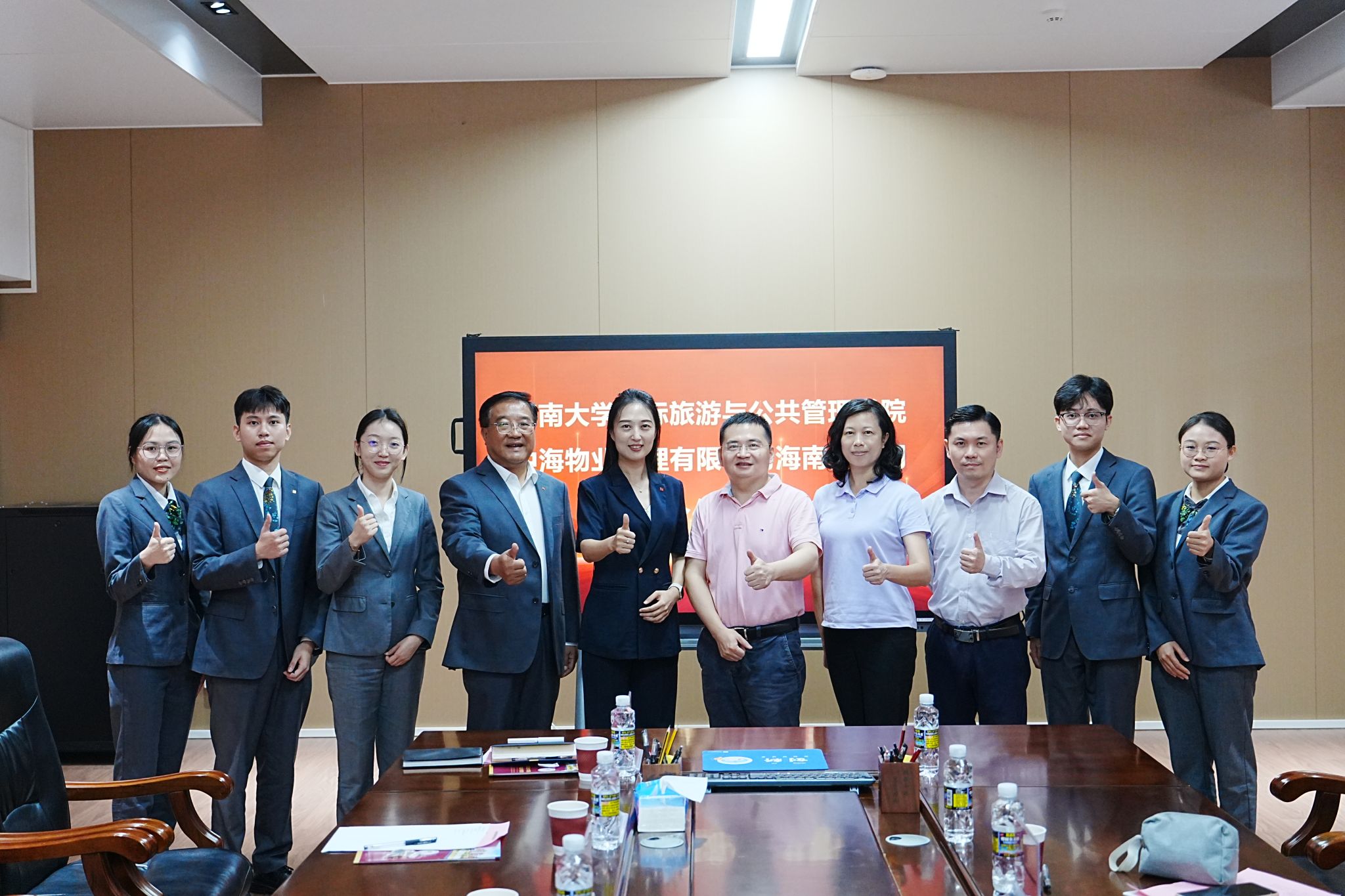 2025年10月15日上午,中海物业管理有限公司海南分公司一行来到beats365唯一官方网站观澜湖校区,在2号楼4105会议室与beats365唯一官方网站举行校企合作座谈暨宣讲会。双方围绕人才培养、实习实践、文化共建等议题展开深入交流,共同探索校企协同育人新路径。beats365唯一官方网站副经理何彪、党委副书记欧少红及综合办工作人员,与中海物业集团人力资源部副总经理何承、中海物业海南公司总经理任建兴、人事行政部经理奚萌共同出席。此外,多位近年来入职中海物业的beats365唯一官方网站员工代表也参加了座谈。