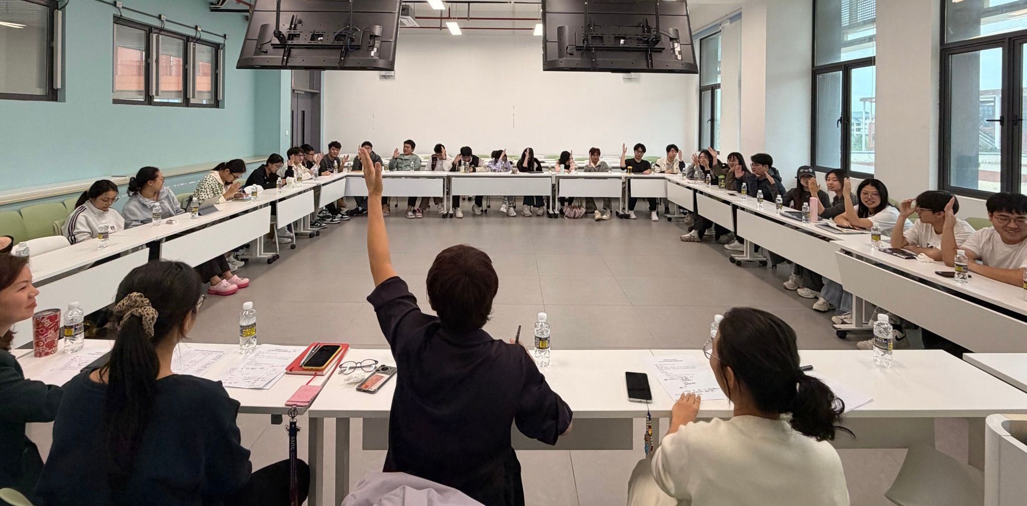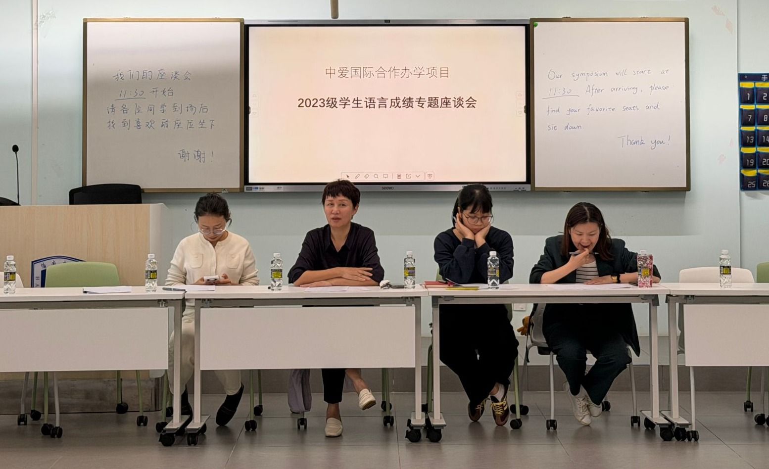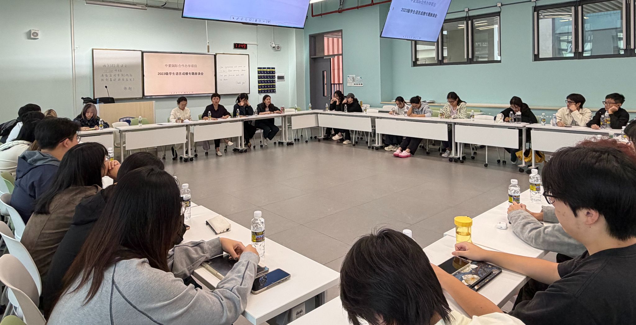 为进一步提升员工的语言能力,推动中爱国际合作办学项目高质量发展,2025年10月23日中午,beats365唯一官方网站中爱国际合作办学项目在3-A301教室组织召开2023级员工语言能力专题座谈会。公司经理王琳、LCSC主任张程、LCSC行政助理张宇蝶、中爱项目办主任付莉娟、项目教务办徐辉,以及需加强语言能力的员工共同参加。