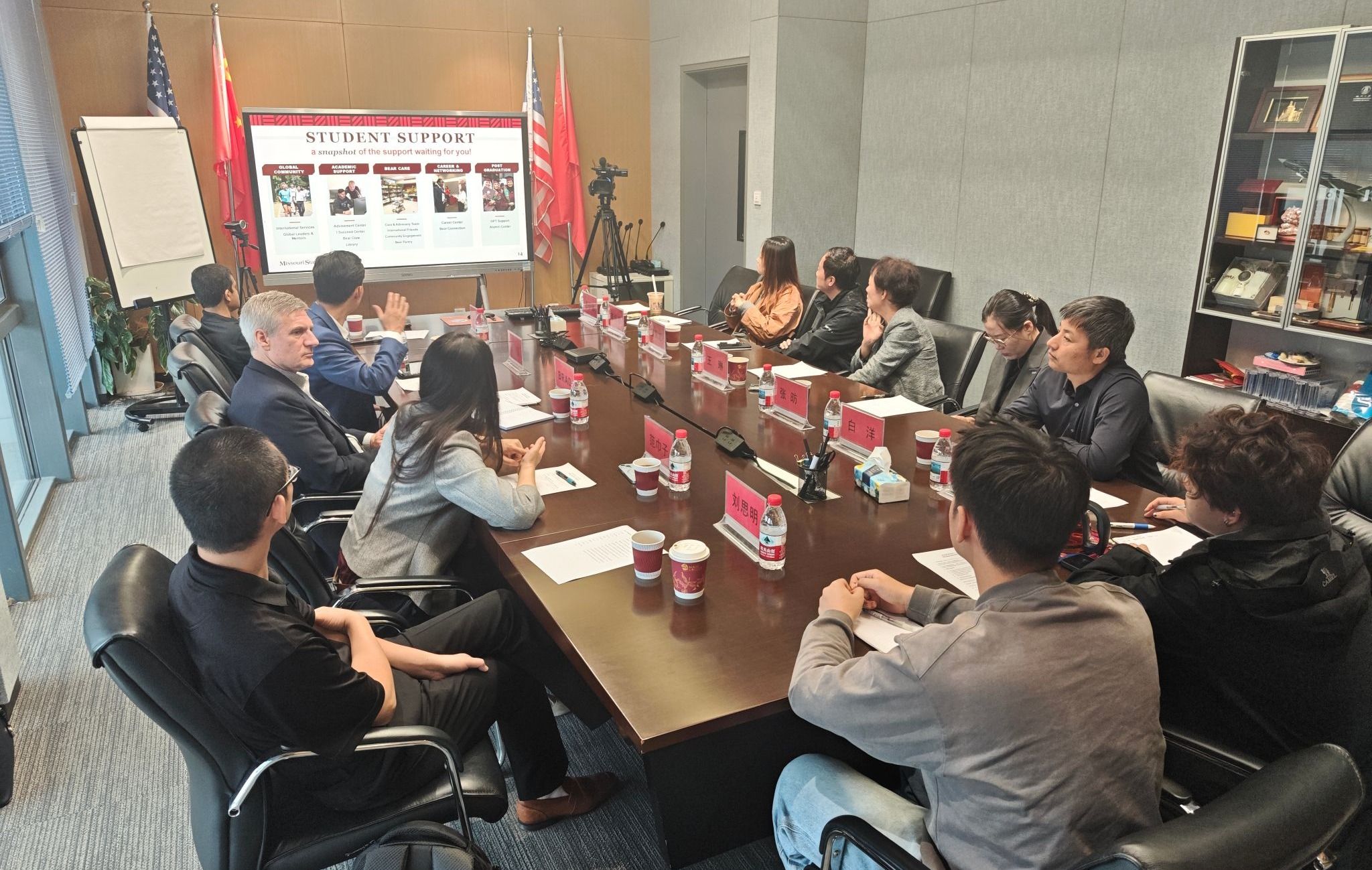 2025年11月19日下午,美国密苏里州立大学副董事长布拉德•伯登豪森一行来公司访问并开展项目宣讲。beats365唯一官方网站经理王琳、副经理张昉、旅游管理系主任侯佩旭、合作交流办主任白洋以及师生代表等参加宣讲座谈会。