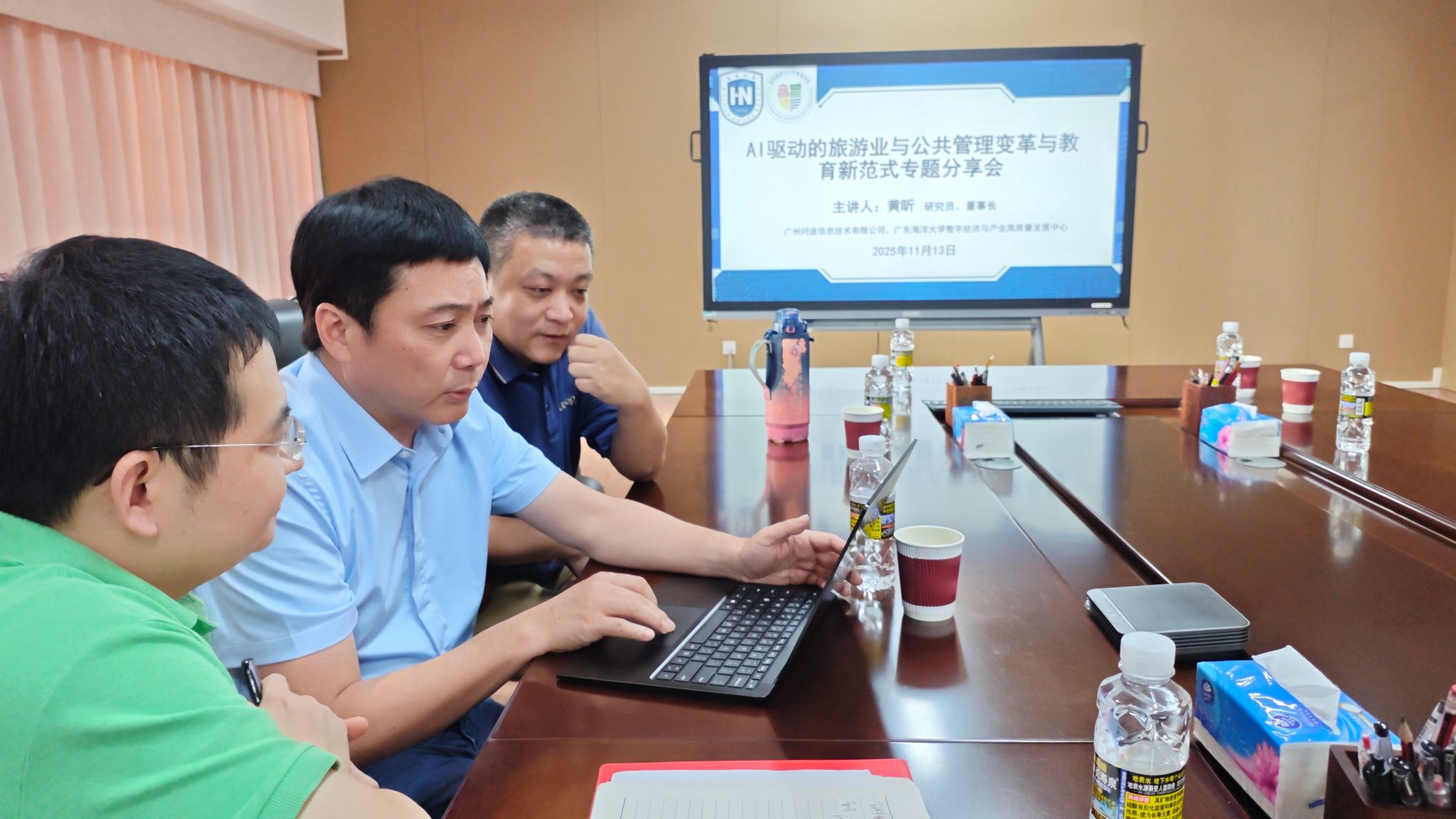 随着人工智能技术的飞速发展,其在教育上的运用展现出更多可能性。为促进教育生态全面转型,推进人工智能赋能教育全面深化,2025年11月13日下午,广州市问途信息技术有限公司董事长黄昕博士应邀莅临公司,在观澜湖校区2教4105会议室作题为“AI驱动的旅游业与公共管理变革及教育新范式”的专题分享。公司副经理何彪,旅游管理专业责任教授范士陈、李萍及公司各系办教师代表参与分享会,现场交流气氛热烈。