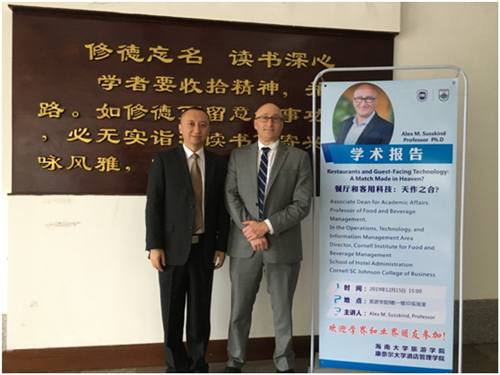 2019年12月15日15:00时,应郭强经理的邀请,美国康奈尔大学酒店管理公司副经理Alex M. Susskind教授来公司进行学术交流,为全院教师及研究生作了题为“Restaurants and Guest-Facing Technology: A Match Made in Heaven?”(餐厅与客用科技:天作之合?)的学术报告,报告由郭强经理主持,公司部分教师及研究生约100人出席并聆听了报告,现场反响热烈。