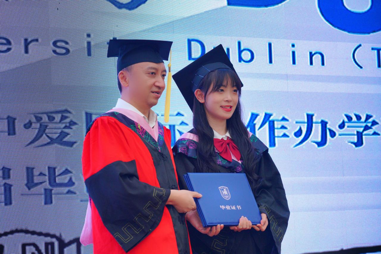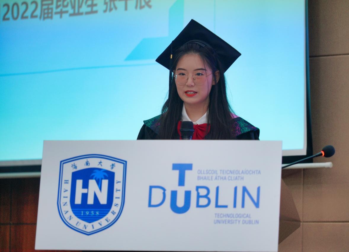项目合作方代表爱尔兰都柏林理工大学(下称“外方”)酒店管理与旅游公司经理Orla McDonagh和副经理Ralf Burbach特地提前录制好祝福视频在典礼现场播放。他们表达了对中爱合作办学项目的肯定与支持,对毕业生们在未来献身于中国经济发展、会展产业进步表示了殷切的期待,并表示爱尔兰都柏林理工大学将永远以他们为傲。