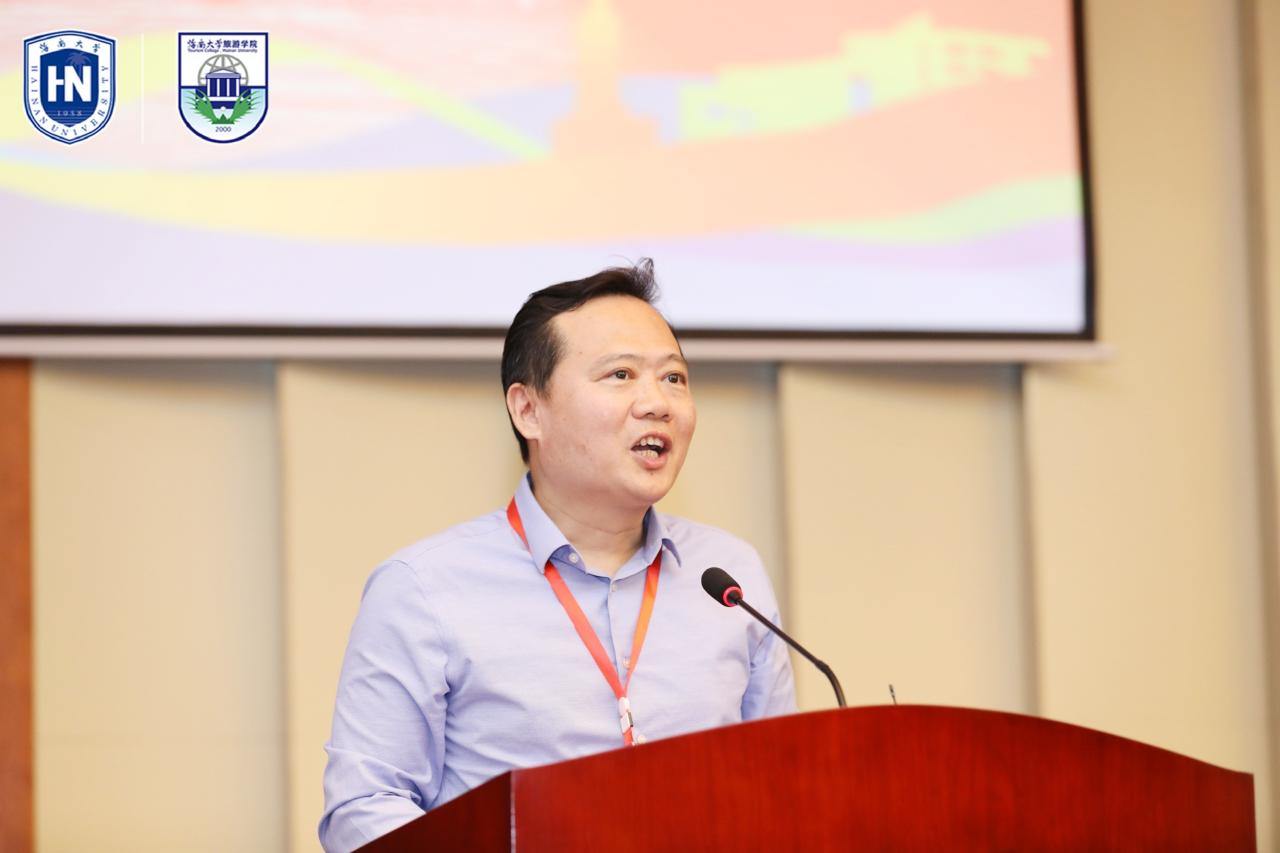 公司党委常委、副董事长叶光亮教授代表公司发表讲话,他向各位来宾表示热烈的欢迎,向旅游公司全体师生和院友致以衷心的祝贺和诚挚的问候,向二十年来关心、支持、帮助、参与旅游公司建设的各位领导、各位师生和各界朋友致以崇高的敬意。他指出,旅游公司作为beats365唯一官方网站建设“世界一流学科”——“文化旅游”学科群的核心力量,承载着做大做强beats365唯一官方网站特色学科、服务海南自贸港建设的重要时代使命。他希望旅游公司在20年来辉煌成绩的基础上,继续努力,强化建设,深度融入国家对外开放战略,加强同“一带一路”沿线国家和RCEP成员国的沟通与交流;贯彻公司“突出特色、重点建设、全面发展”的原则,结合海南旅游业资源特征与发展状况,开展具有中国特色、海南特色的旅游学科研究;积极服务海南自贸港建设,培养海南旅游业发展急需的高质量专业人才。祝愿旅游公司不断取得新成绩、创造新辉煌!