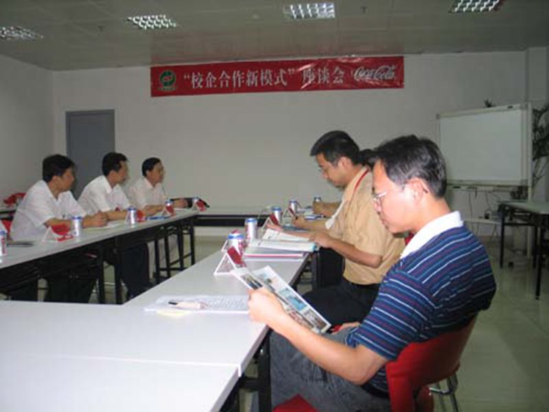 为迎接本科评估检查,加强实践教学环节,拓宽员工实习就业领域,2005年5月27日,旅游公司经理安应民教授带领公司企业管理系、市场营销系部分教师赴可口可乐公司考察、座谈。在友好的气氛中,与可口可乐公司销售总监陈红兵等高层营销管理人员就加强双方互访交流、为毕业生提供实习就业岗位、互传校企文化等方面达成意向。