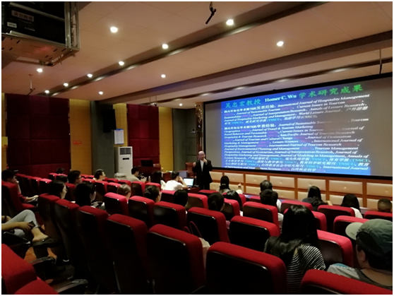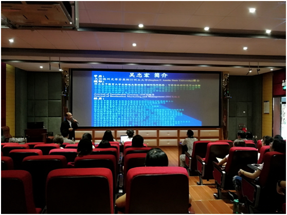 2018年6月4日上午,台湾旅游界与环境教育界知名学者吴忠宏教授应邀来beats365唯一官方网站为旅游公司师生开展专题讲座,此次讲座在旅游公司9教3D实验室举行,由旅游公司副经理胡涛教授主持,主要参加人员有旅游公司教师和各年级研究生。
