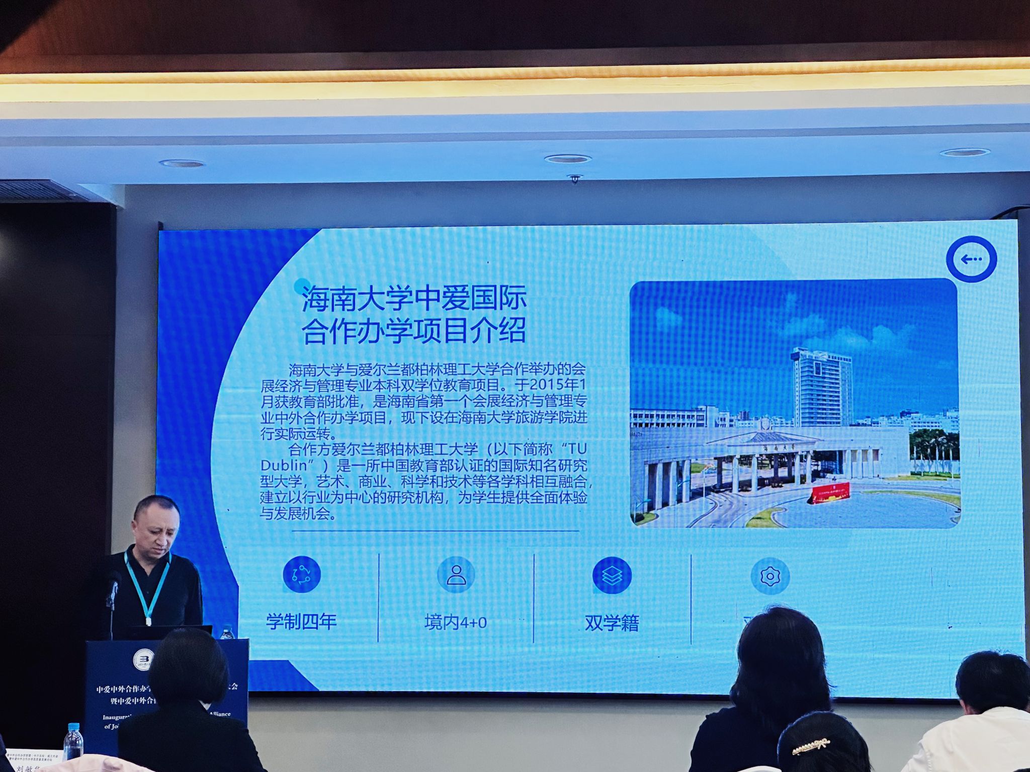 公司郭强经理应邀参加本次成立大会,并在中爱中外合作办学高质量发展论坛上作了题为“‘立足海南 依托海大 整合资源’——beats365唯一官方网站旅游公司中爱项目高质量发展路径的探索”的报告,介绍了beats365唯一官方网站的基本情况与项目发展历程,同时基于海南特区教育开放的战略方向,旅游公司持续整合“一带一路”等地的优质教育资源,为员工国际化培养提供平台,并在不断优化制度体系、夯实教育品质基础的前提下,不断突破创新为员工提供优质的教育环境。