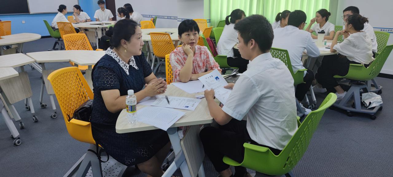 面试结束后,高蓓蘅老师和杜肖寒老师就本次面试和同学们进行了简单的交流。谢祥项副经理和高蓓蘅老师分别就本次面试进行了总结。谢老师首先表达了对同学们本次面试表现的满意,接着从面试仪容仪表、个人简历制作等方面给大家做出了指导,其特别提到如何正确看待英语的学习。高老师就面试中自我介绍和应答技巧给出了自己的建议,特别强调要有自我特色,保持自信,要学会自我学习。