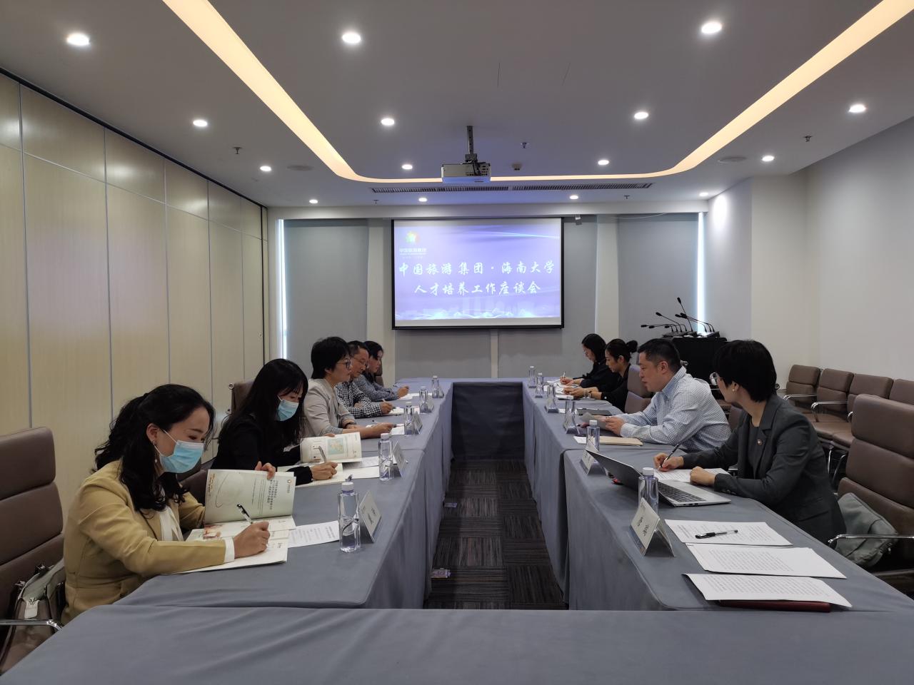 为深化校企合作,进一步做好中国旅游集团下属在琼企业旅游人才联合培养事宜,10月19日上午,公司张珊副经理带领“旺工大学”项目办及有关专业教师一行五人前往中国旅游集团(海南)分公司调研,就做好2023年“旺工淡学”项目新专业方向的教学规划工作,与中国旅游集团蒋豪副总经理、人力资源及销售总监等进行了座谈交流。