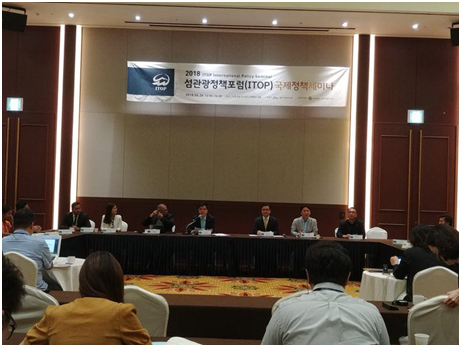 2018年6月26日-6月28日,公司宋蒙蒙老师应邀代表海南省参加了2018 ITOP International Policy Seminar,此次研讨会在韩国济州岛举行。本次研讨会的主题为“Policy issues and strategies for sustainable inter-island tourism”,来自韩国、泰国、中国、印度尼西亚、菲律宾、斯里兰卡等多个国家和地区的80多名专家学者参加了本次研讨会。