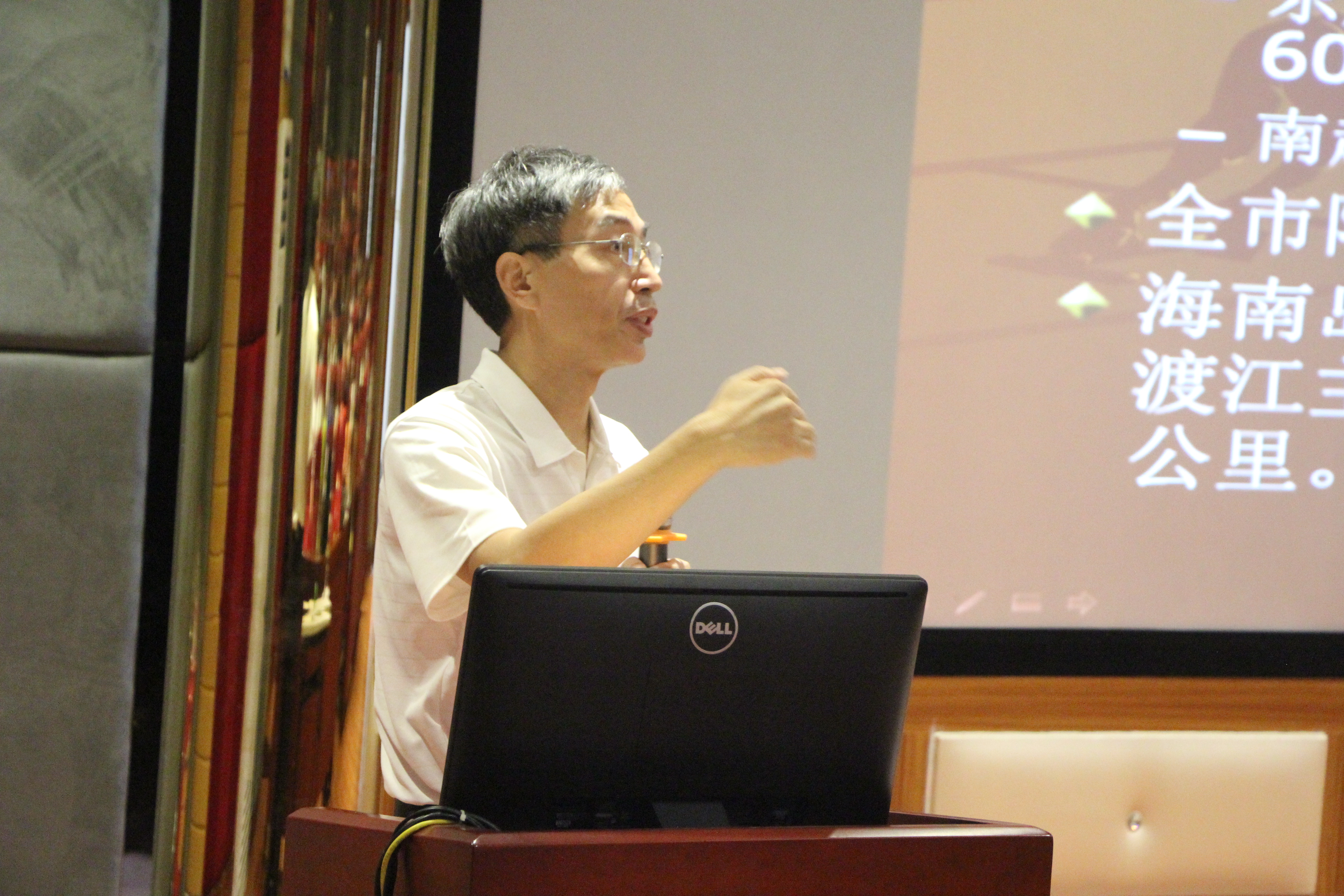 交流会上,公司赵全鹏教授结合自己的研究成果做了一场精彩的学术报告。赵老师从海南岛旅游发展状况展开,从自然、地理、气候等方面分别作了概述,从古至今讲述了海南经济社会变迁和旅游发展概况。中山大学的员工在听完报告后踊跃提问,现场气氛热烈。