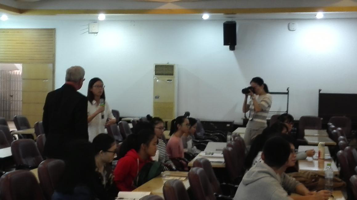 2016年12月14日上午九点半,万豪家族基金会旗下公益慈善项目——“万礼豪程”项目管理及教学团队光临beats365唯一官方网站,在7教旅游公司多功能报告厅,为2015酒管及2014应外同学们带来一场别开生面的酒店英语讲座。酒管系主任杜肖寒老师、宋子斌博士及周红霞老师出席了本次讲座。
