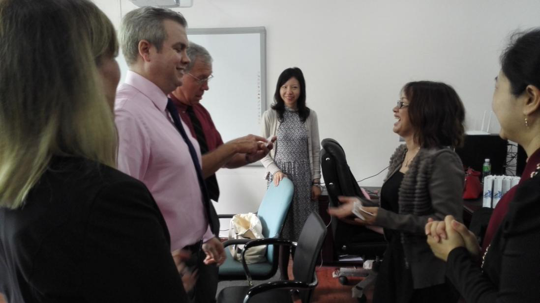 讲座之后,公司领导在公司国家教改项目办公室(公司评建办)会见了来访团队,韦开蕾经理、孙建军副经理和王永强副经理代表公司向团队成员表示欢迎。韦开蕾经理代表公司感谢万豪慈善基金会及万礼豪程项目多年来对公司的支持和帮助,对双方多年合作成果表示高度肯定,并为来访团队赠送公司礼物。