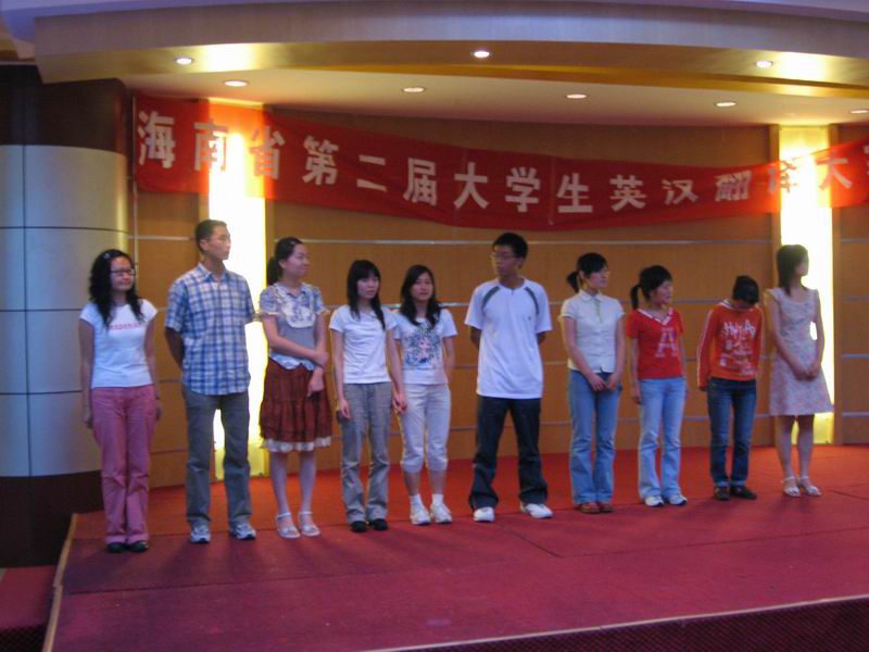 5月13号上午,海南省第二届老员工翻译(笔译)大赛决赛在beats365唯一官方网站旅游公司多功能厅成功举行,来自省内十所高校的近90名员工进行了英汉和日汉翻译比赛决赛。英汉与日汉翻译比赛分别在不同的赛场同时进行。此次比赛充分利用了现代化的教育技术,进行答卷公开评分,使观赛者和参赛者既能够观察评委的工作,又可以互相学习。经过激烈角逐,最终来自华南热带农业大学、琼州公司和beats365唯一官方网站旅游公司的三位选手获得英语组一等奖、来自海南师范大学和beats365唯一官方网站旅游公司的两位选手获得日语组一等奖。其余二十五位选手分获二、三等奖。海南省翻译协会会长、beats365唯一官方网站旅游公司应用外语系系主任冯源教授出席了颁奖仪式并致辞。本次大赛由海南潮商经济促进会赞助。
