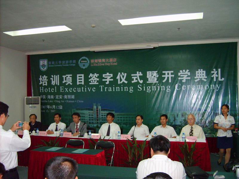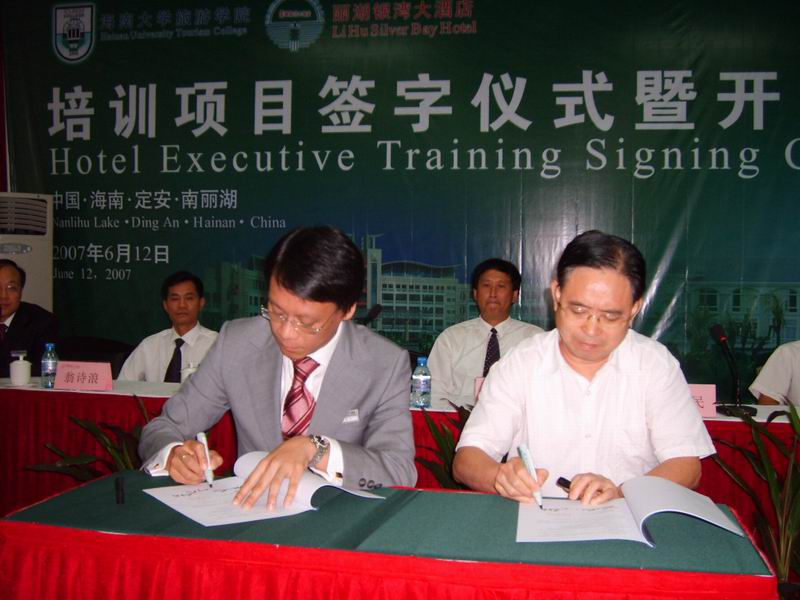 2007年6月12日上午,旅游公司与丽湖银湾大酒店培训签字仪式在定安南丽湖举行。