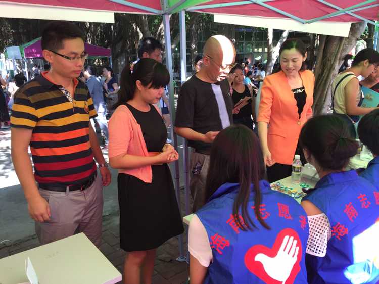 公司王琳经理、陈扬乐副经理与海甸校区志愿者们合照.