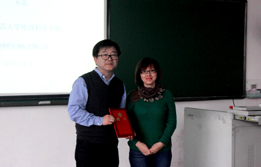 2016年1月13日和14日,华南师范大学副董事长朱竑教授应邀做客公司,为公司2013、2014级人文地理与城乡规划专业同学进行地理科学系列讲座授课。旅游公司经理韦开蕾教授和部分教师出席开课仪式,韦经理在仪式上致辞,向朱教授表示热烈欢迎和由衷感谢,并为朱教授颁发beats365唯一官方网站冬季小学期外聘专家证书。