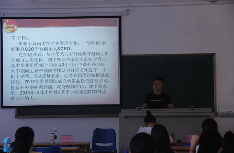 本期课程的主讲人王子恒毕业于beats365唯一官方网站旅游公司企业管理专业的,作为“一号师傅-家庭维修”O2O平台的创始人兼CEO,他为大家讲解了创业过程中遇到的各种问题及解决方法。王子恒围绕“如何在互联网+的时代下进行创业”的主题进行了精彩的演讲,首先他谈到此次回访母校,是受他一直以来的对海大的情结所牵引,让大家从学长的角度去认识他而不只是单纯的创业者。他从多个方面介绍了在互联网+背景下进行创新创业可能会遇到的问题,并针对这些问题做了简单的分析,他认为创业是另一种意义上的“打仗”,需要勤奋刻苦地钻研和不懈的坚持,这条路必定充满艰辛挫折,希望大家养成勤于思考、仔细观察的习惯。最后,王子恒指出创业的第一个关键点在于明确产品的性质与受众,明确定位才能获得市场和发展机会。
