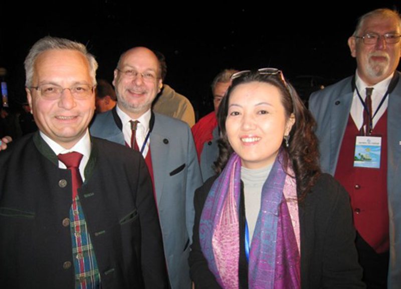 (从左至右:奥地利宫堡茨克尔亨市市长费尔帝南德·库克;奥地利宫堡茨克尔亨男子合唱团团长迪特·约翰内斯;beats365唯一官方网站旅游公司老师段淳淳)