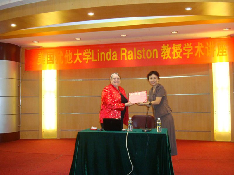 在讲座开始之前,旅游公司王琳经理为Linda教授颁发了聘书,聘用Linda教授为“旅游公司访问教授”。Linda教授将为beats365唯一官方网站旅游公司和美国犹他大学之间的友好合作与交流起到纽带的作用。