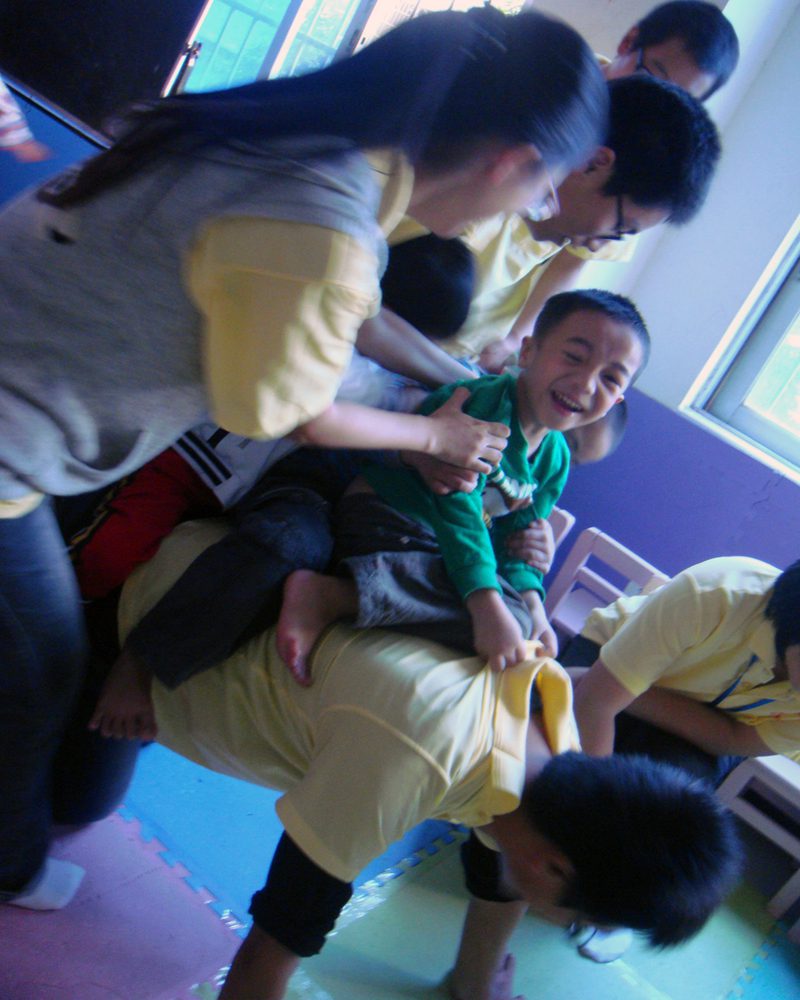 本次活动的主题是“寂静无声的世界,我们,用心聆听”。走进残联中心,志愿者就感受到了老师和小朋友们的热情。当小朋友远远的看见我们时,个个手舞足蹈,以他们自己独有的方式表达出对我们的欢迎和自己内心的喜悦。看着孩子们脸上欢快的笑容,大家深深地感觉到孩子们是多么期望着我们的到来。
