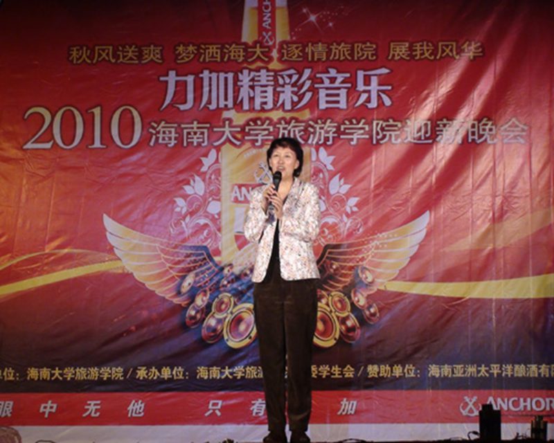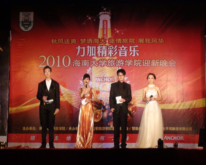 在晚会的开始,王琳经理对此次晚会发表致词。首先,经理为这些活跃在旅院2010级崭新的青春面貌表示欢迎,并预祝同学们的光辉前程。之后,王琳经理对过去一年的时间里提出了几个感谢:感谢老师、同学们为旅院的辉煌所付出的工作与努力;感谢此次活动的赞助商——海南亚洲太平洋酿酒有限公司对本次晚会的冠名支持,并对一年来团学工作取得的成绩给予肯定,对公司员工工作提出希望,并预祝晚会圆满结束。