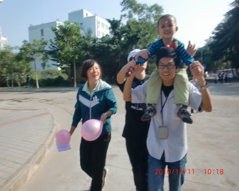 为了使孩子们充分享受到阳光并尽快融入校园,志愿者跟老师一起,把孩子带到公司一教前,在那里,小朋友跟自己临时的“爸爸”、“妈妈”一同喂鱼,作画,拍照,大家吵着、叫着、画着,现场一片和谐欢腾。这些简单的小活动,让小朋友与自己的“爸爸妈妈”都有了近距离的接触,通过这些活动,小朋友们渐渐敞开自己的心扉,把他们小小的手放到志愿者的手上,这不经意的举动让大家感受到,这些孩子需要我们伸出双手,张开怀抱……接着各个临时“家庭”带着自己的宝贝到第一田径场会合,在那里,大家有的照顾孩子玩转盘、有的保护孩子玩双杠。好多志愿者抱着这些可爱的小朋友,他们就像对待自己的孩子一样的亲,轻声细语的和孩子们喃喃的说着话,而孩子们就像回到了自己父母的怀抱,紧紧搂住他们,依赖、留恋、开心都写在孩子们的脸上。当大家全部到了田径场以后,志愿者跟孩子们一起玩起了“老鹰捉小鸡”,“抬轿子”,“蒙眼抓人”的游戏。整个操场都是欢声笑语,其乐融融,场面像是一个幸福大家庭的聚会。
