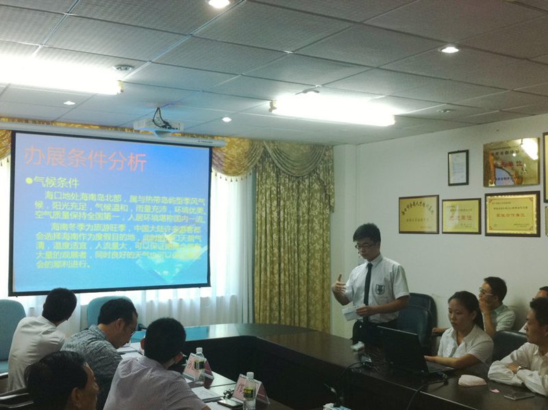 本次选拔赛评审会本着“官产学研”协同创新的原则,特邀海口市会议展览业协会会长杨学功、海口市会展局法规和信息处处长邝劲鹏、海南海旅会展服务有限公司董事长詹斯雄、海南辰达国际会展有限公司副总经理孙启航、海南开启会议展览有限公司总经王俊刚,以及beats365唯一官方网站旅游公司副经理胡涛教授、会展经济与管理系主任程静副教授等组成专家评审委员会,对所有参赛方案进行评比打分。会议由会展经济与管理系副教授耿松涛主持。