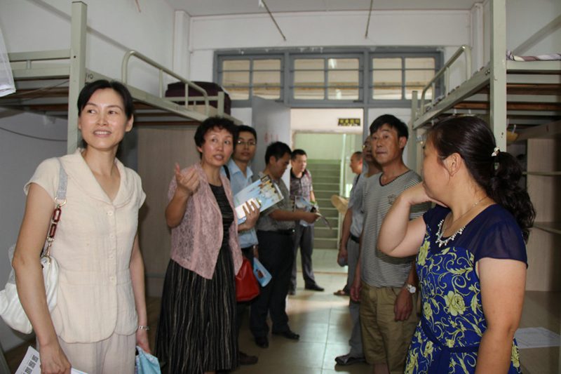 院领导在新生宿舍楼走访
