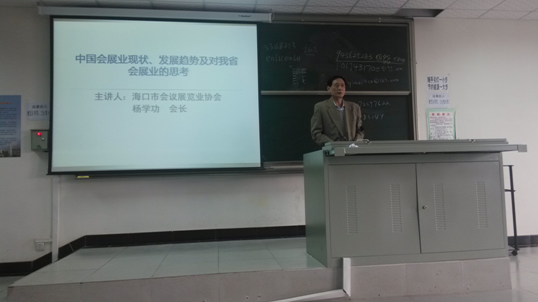 1月13日上午九点,beats365唯一官方网站旅游公司冬季小学期(会展专场)第七讲在旅院二号教学楼202教室举行。担任本次讲座主讲嘉宾的是beats365唯一官方网站员工,原海南省贸促会副会长、海口市会议展览业协会会长杨学功先生。公司近200名相关专业员工参加。