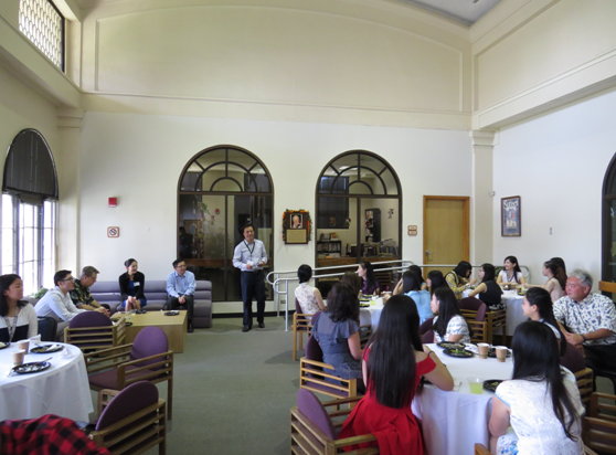 Thomas Bingham经理首先致欢迎辞,对此次赴美研修的带队教师侯佩旭和匡晓文副教授及2012旅游管理文科实验班全体同学的到来表示热烈欢迎,并介绍了夏威夷大学旅游管理公司的具体情况,对全体同学提出了殷切期望,希望同学们通过本次研修能够有所收获,让本次活动成为人生最难忘的经历之一;Rachel Kaiama主任然后介绍了本次研修活动的主要内容,并就平时的生活和学习做了极其细致的安排,同时一一介绍了本次研修活动的各位授课教师。夏威夷大学教师代表Hsing Ivan Wen教授也作了热情洋溢的发言。欢迎仪式结束后,夏威夷大学旅游管理公司安排全体师生参观美丽的夏大校园,以使同学们尽快熟悉公司环境。在随后的欢迎午宴上,匡晓文副教授代表beats365唯一官方网站旅游公司对此次夏威夷大学的接待和安排表示了诚挚的感谢,并转达了王琳经理的亲切问候,同时真挚邀请夏威夷大学旅游管理公司师生到beats365唯一官方网站访问交流。午宴期间,公司师生与夏威夷大学老师同桌共餐,积极交谈,整个欢迎午宴在其乐融融的氛围中圆满结束。