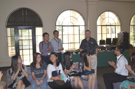 2015年1月12日(夏威夷当地时间11日),公司2012旅游管理文科实验班27名同学及两位带队老师,经过长途跋涉,顺利到达夏威夷大学旅游管理公司,开展为期21天的专业研修。1月13日(夏威夷当地时间12日)上午10点,夏威夷大学旅游管理公司在落日会议中心举行了别具一格的欢迎仪式。参加欢迎仪式的有夏威夷大学旅游管理公司经理Thomas Bingham教授、夏威夷大学本次研修项目的主要负责人Rachel Kaiama主任以及本次研修班的主要授课教师。欢迎仪式分为欢迎致辞、校园考察和欢迎午宴三个环节。