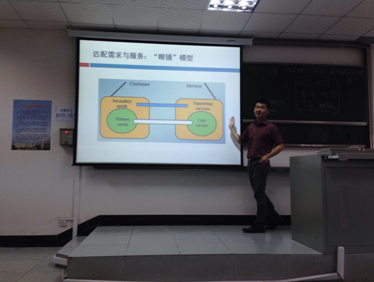接下来几天的课程讲授,按照两位老师的安排分别从需求与承诺、服务蓝图、市场营销技术与方法三方面展开。前两部分主要是关于整个市场营销理论知识的介绍,第三部分强调的是市场营销实操过程中的具体操作方法与步骤,其中主要介绍了隐喻抽取技术(ZWET)、名义小组(NGT)、焦点小组以及调查问卷设计等。上课过程中授课方式新颖独特,在结合传统的老师讲述的基础之上,大大增强了同学们在整个课堂上的参与性。两位老师不仅能够将理论知识传达给同学们,更重要的是能让员工参与到这个讲课的过程中去,提高同学们的主动性,让同学更深刻地明白每一个理论的实际含义,每一种方法的操作步骤。课程中所有对于市场营销过程中技术与方法的介绍通通采取同学们自己在课堂上演绎的方式展开,主讲老师事先挑选几位同学将下一次课的课堂演示任务布置给他们,在下次课上,这几位同学在主讲老师的指引下,将自己准备的结果展示给课堂上的其他同学,其他同学在认真观察与记录负责演示的同学在整个过程中的语言与动作等表现以及老师和其之间的对话的过程中,慢慢理解与体会具体的市场营销方法与技术的操作流程与技巧。从营销咨询服务到各种营销调研方法,老师们讲解每一点都是紧紧结合着时代的进步,用自己的切身感受和风趣幽默的方式,让同学们受益良多。例如在讲授隐喻抽取技术(ZMET)相关知识的课程中,主讲老师抽取一位同学让她将自己事先准备好的关于可口可乐的十幅图片展示出来,在老师的一步步指引之下描述自己对每一幅图片的理解,并在此基础上联想出其他的相关图片与内容,按照自己的理解将所有图片分类,向大家解释这种分类的依据,并比较分析自己所认为的可口可乐与其竞争产品的不同。在整个演示的过程中,主讲老师不断提醒其他同学注意观察以及记录演示同学的描述、动作以及老师的引导问题,演示结束后,主讲老师请其他同学依据自己的观察与记录,总结出隐喻抽取技术的实施步骤。相比以往单纯由授课老师讲述的授课方式来看,这种强调员工参与的教学方式使得同学们对于这些市场营销技术与方法理解的更透彻、更全面,而且对于具体的操作流程与操作过程中的要点难点记忆的更深刻,在一定程度上增强了课堂的生动性,调动了同学们的学习积极性与学习热情。
