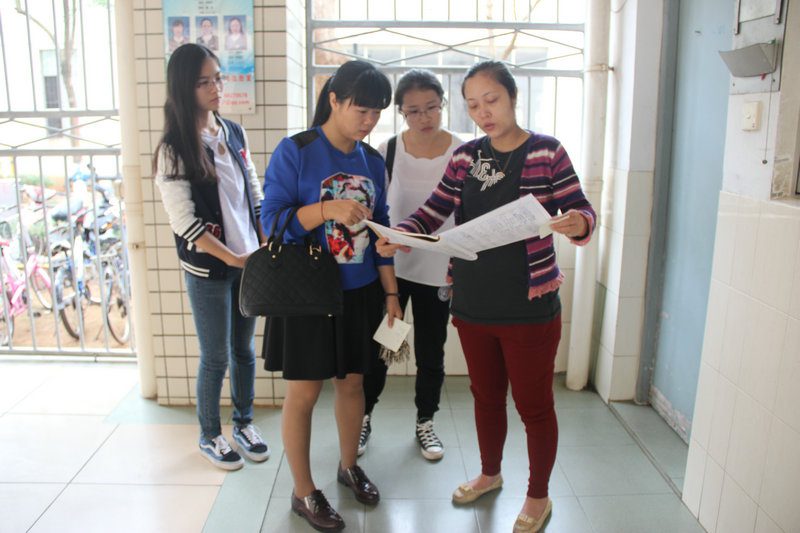老师和楼管在核对宿舍名单
