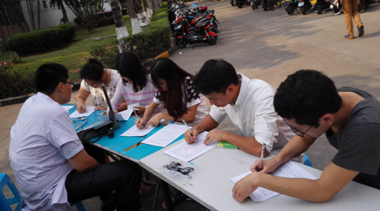 同学们正在填写献血卡