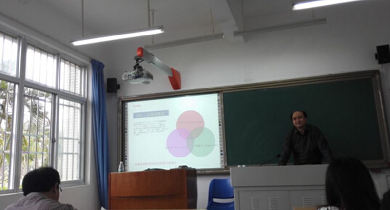 应旅游公司副经理陈扬乐教授的邀请,2014年4月24日,海南华都城市设计院经理、海南省城市规划协会副理事长、中国城市规划协会会员、中国城市科学研讨会高级会员吴小平,在5-119教室,为旅游管理专业研究生举办了题为“新常态下生态优位的旅游发展策略探讨:以海南泛松涛天湖生态区旅游发展总体规划为例”的学术讲座。
