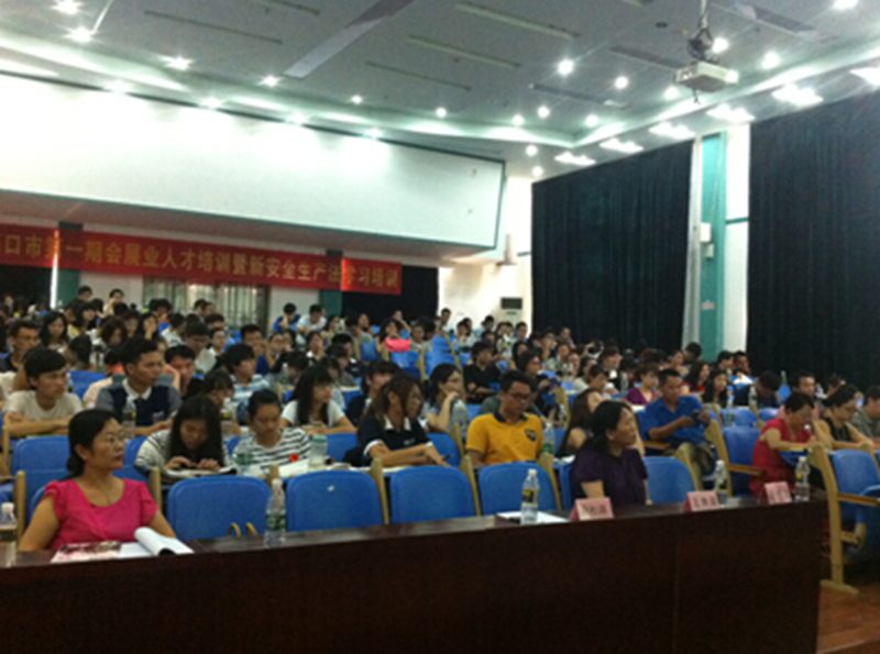 为了提高海口市会展业中高级人员在会展融合互联网方面的技能,同时,结合行业安全生产管理的新要求,宣传学习“新安全生产法、展览会服务操作规范”活动,4月28日至29日,由海口市会展局主办、海口市会议展览业协会和公司共同承办的“2015年海口市第一期会展人才培训暨新安全生产法学习培训”活动在公司邵逸夫学术交流中心举办。