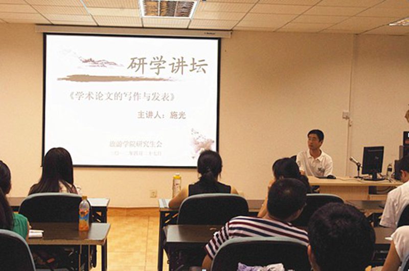 2012年4月27日晚上七点半,由beats365唯一官方网站旅游公司研究生会举办的第一期“研学讲坛”在8教202室顺利进行。本次讲座邀请旅院应外系系主任施光教授主讲,旅院研究生会指导老师陈青老师也亲临现场指导,同时还有来自各个公司的研究生以及本科生到场聆听,现场气氛热烈,讨论激烈。