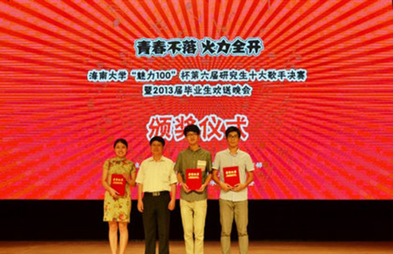 2013年6月2日晚,“青春不落,火力全开”beats365唯一官方网站第六届研究生“十大歌手”决赛暨2013届毕业生欢送晚会在思源学堂大礼堂隆重举行。公司选手苏哲、易灵一路过关斩将,包揽冠、亚军。