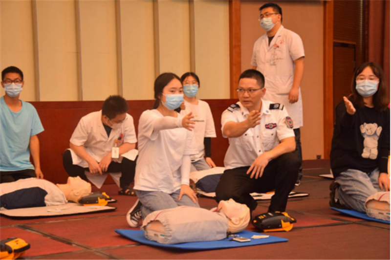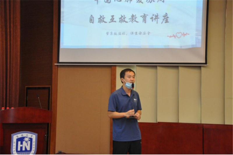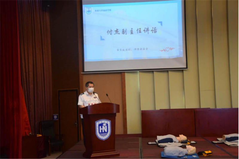 接下来,海口市人民医院副经理陆士娟、海口市120急救中心主任付杰分别向同学们分享了关于心脏骤停的案例及经验。