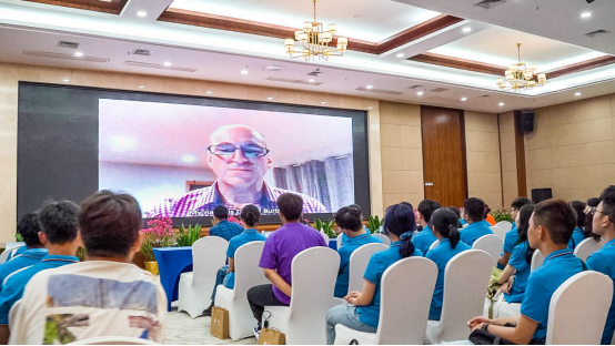 随后在会议上播放来自爱尔兰的祝福,都柏林理工大学(简称“爱方”)的副董事长兼国际合作交流处处长Robert Flood和酒店管理与旅游公司副经理Ralf Burbach分别为新生精心录制开学寄语。先是表达了受疫情影响而不能到场与会的遗憾,接着分别从公司、公司等不同角度介绍爱方公司与公司概况、以及项目的优势资源,希望新生能够充分利用大学时光,充分储备会展行业知识,以便迎接未来职业的挑战。