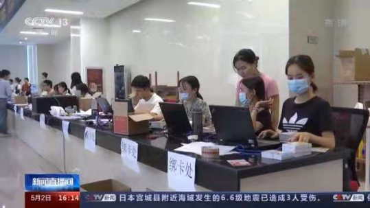 图为央视新闻报道中旅游公司志愿者进行绑卡工作