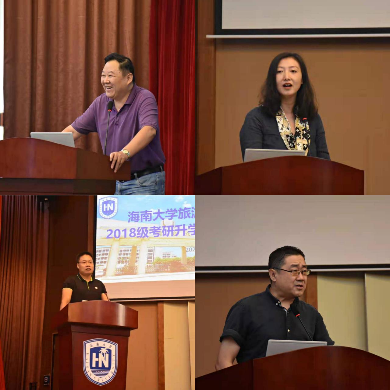 首先,郭强经理从为什么要考研,为什么是现在考研,为什么能考上三个方面,结合当今时代形势分析进行了动员讲话。接着,四位系主任依次分享经验和建议。袁国宏老师结合自己经历指出考研是促进自己进一步发展的重要机会;刘雪莲老师从设立考研目标、辨析考研动力和院校专业选择三个方面给同学们提供了宝贵建议;潘志新老师在分享中着重说明了选择、努力和心态的重要性,并提醒同学们要制定合理的备考计划;吴波老师强调人生规划的重要性,指出尤其在毕业之际,时间是宝贵的,同学们要尽早确定符合社会潮流,顺应时代发展的生涯规划。