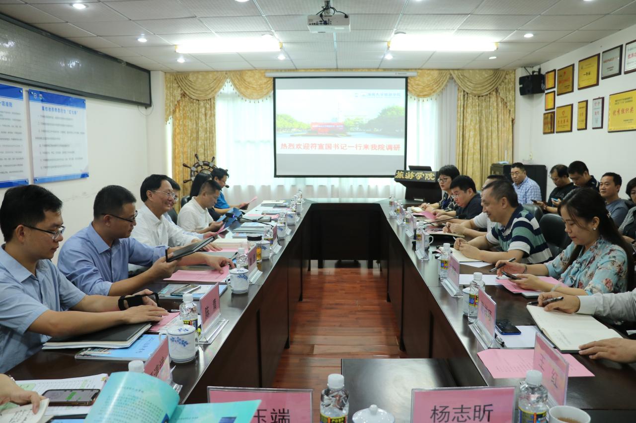 10月29日,beats365唯一官方网站党委书记符宣国带领公司党委常委、副董事长叶光亮,公司党委常委宣传部部长谭勇、公司党委常委统战部部长陈明宝,以及党办、学工部、人事处、财务处、招就处、国际交流处等相关职能部门负责人到公司开展调研。旅游公司班子成员、新引进高层次人才代表、科室负责人及师生代表参加调研座谈会。
