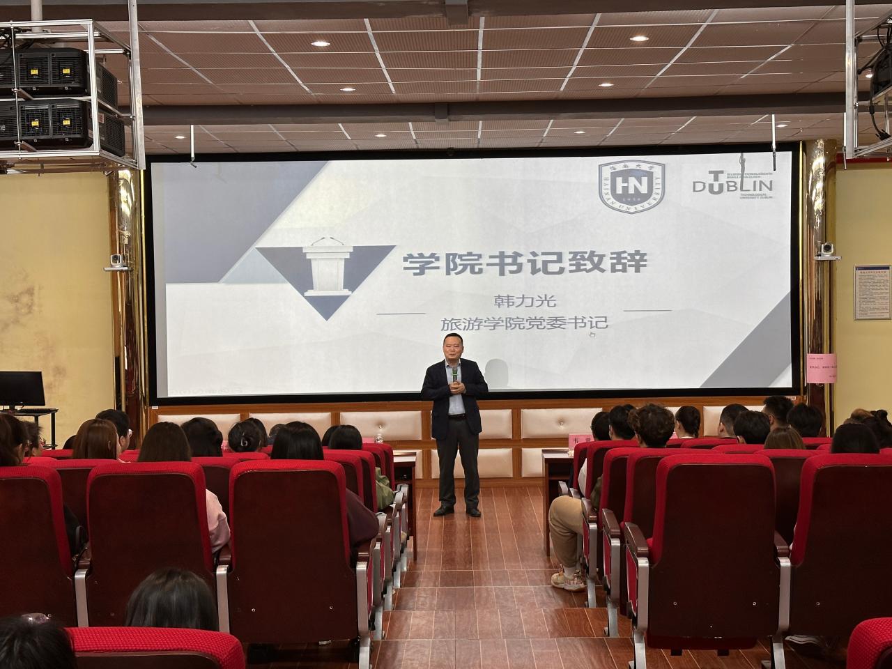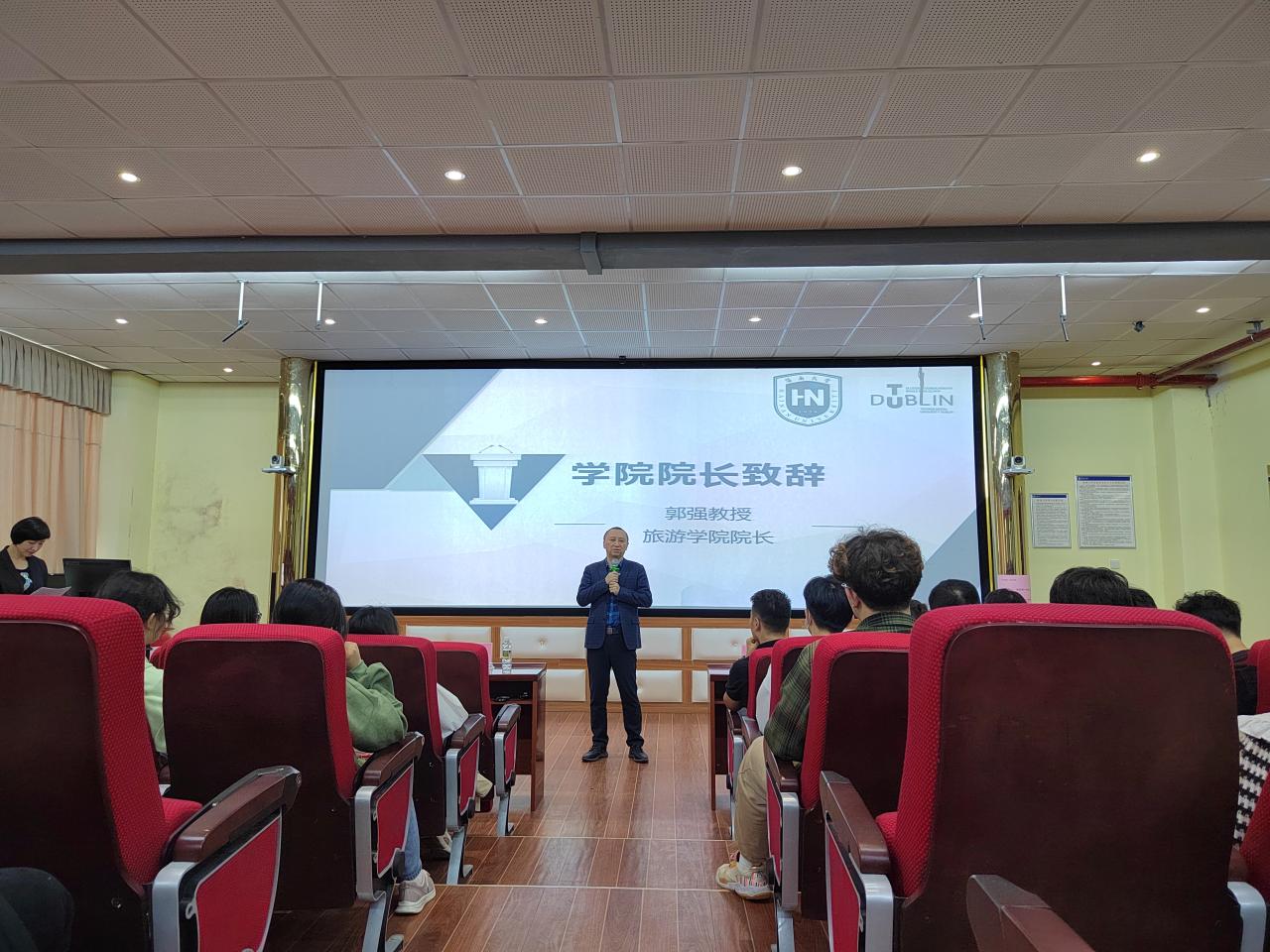 为了让员工更好的了解中爱国际合作项目,外方代表爱尔兰都柏林理工大学管理与旅游公司副经理Ralf Burbach特地提前录制好迎新视频,不仅详细地介绍了都柏林大学以及项目合作的现状,也表达了希望早日和同学们线下见面交流的美好祝愿。